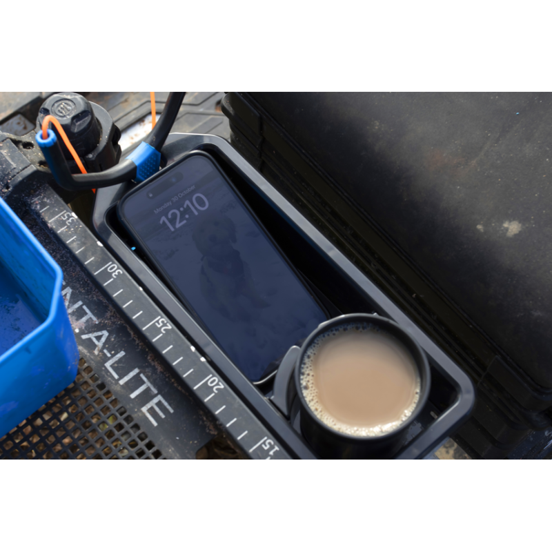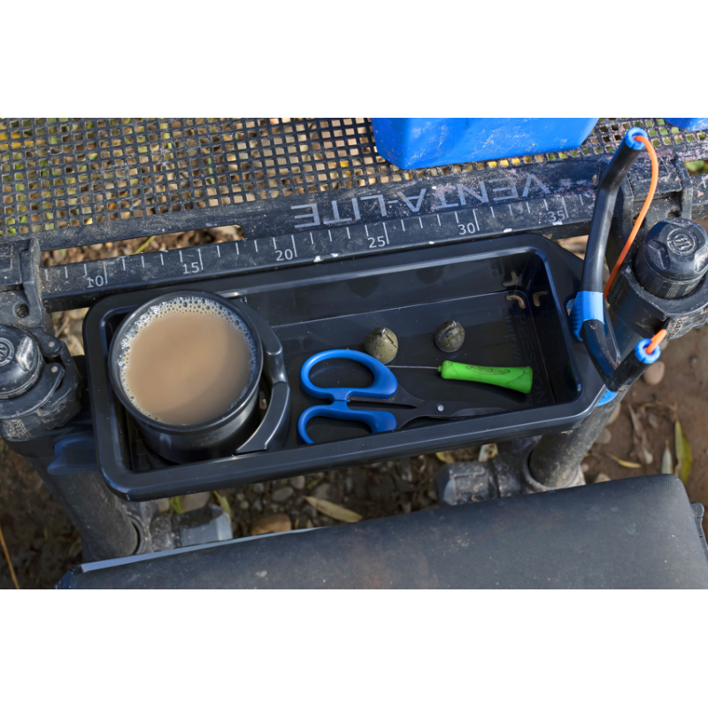 Le Support OffBox - Accessory Tray de Preston est un plateau d'accessoires astucieux conçu pour maximiser l'espace de rangement sur votre poste de pêche. Sa forme est spécifiquement étudiée pour s'insérer entre le panier-siège et le plateau latéral Venta-Lite, comblant l'espace et offrant un rangement supplémentaire idéal pour les petits objets essentiels.